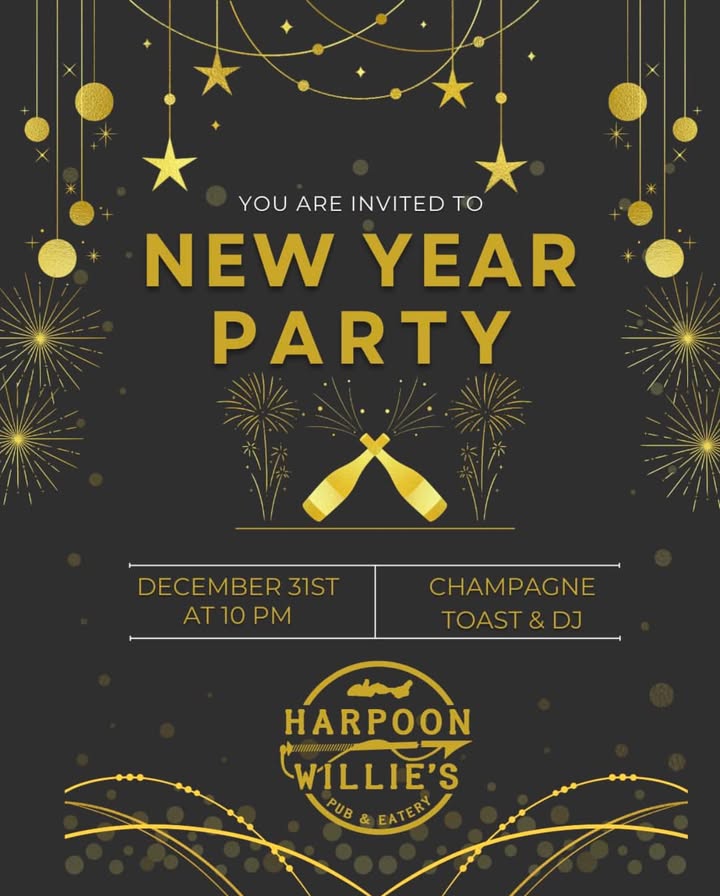 🥂🕺Join us at Harpoon Willie’s after dinner at Cafe Calamari, and ring in the NEW YEAR! DJ & dancing begins at 10pm with a champagne 🥂 toast at midnight! 💃
