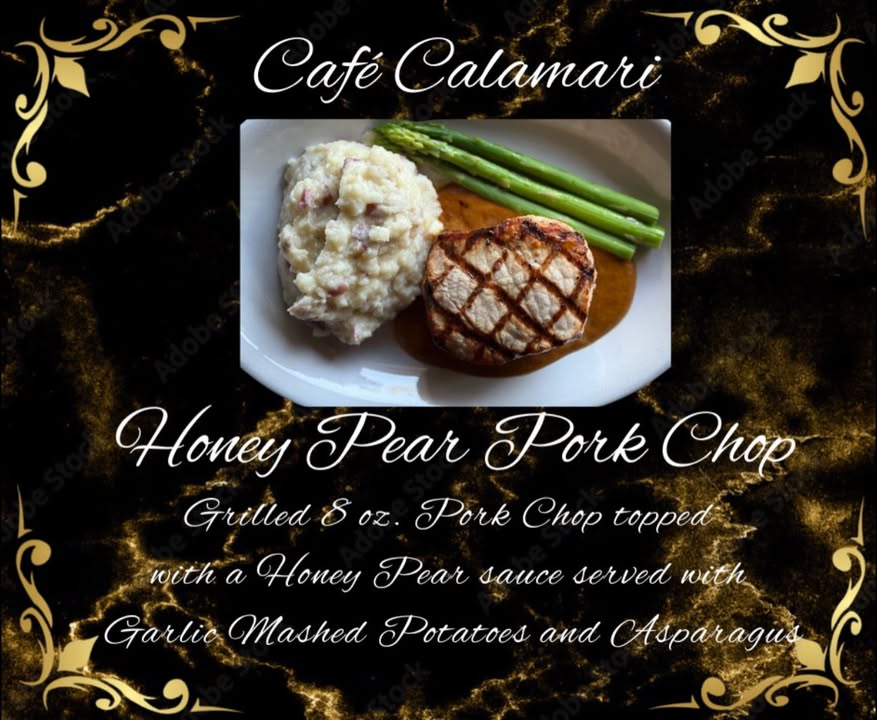 Looking for something to eat after Black Friday Shopping? Come into Cafรฉ tonight for our local favorite- the Honey Pear Pork Chop!