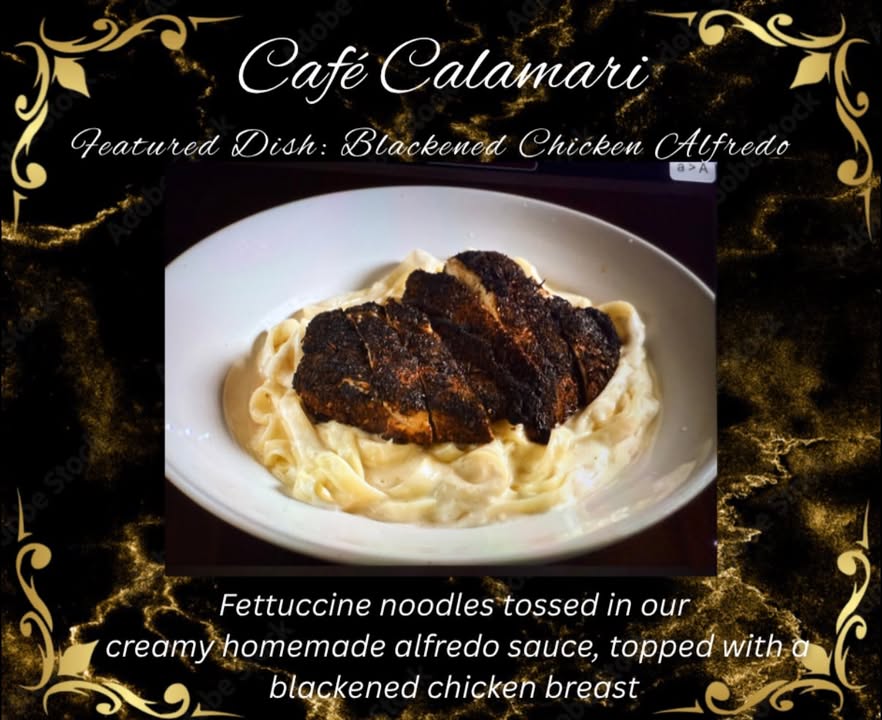 Today, we are featuring our Blackened Chicken Alfredo! Nothing is better on a rainy day than some comfort food- and this is one of our favorites! Come in and try it 😋