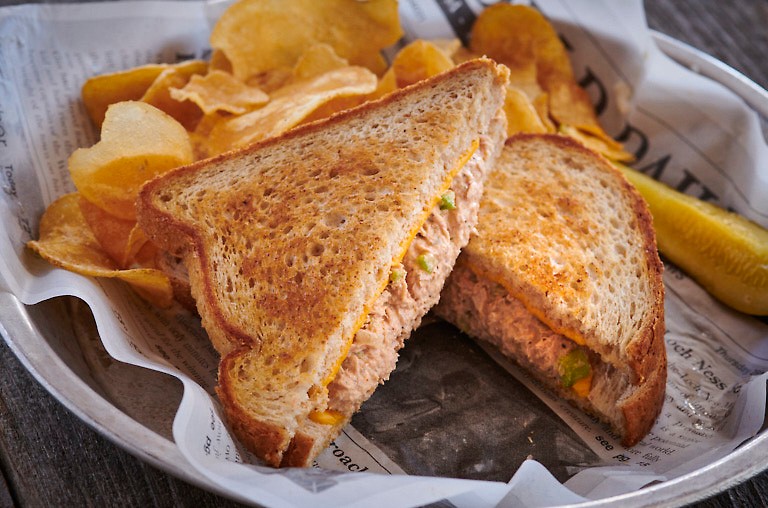 Tuna Melt Tuesday! Two slices of Wheat Bread grilled until golden and topped with American Cheese and Tuna Salad.